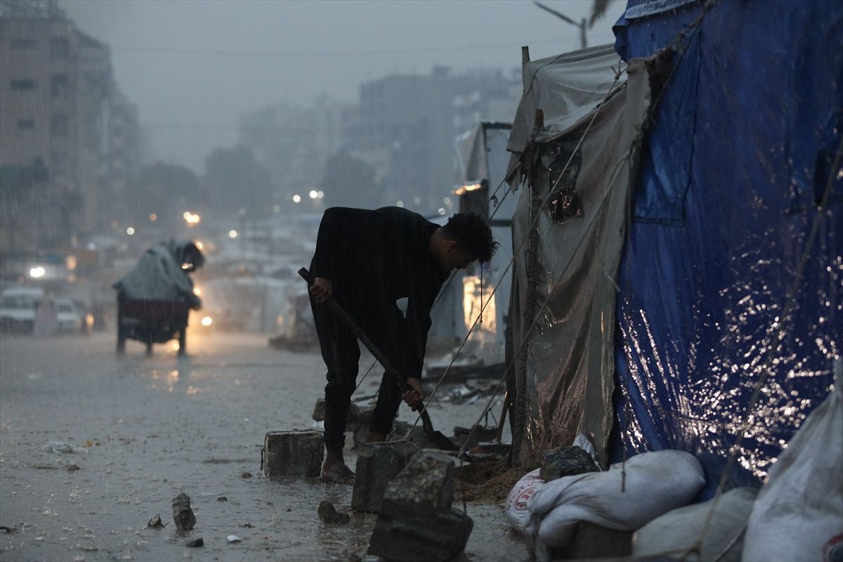 Gazze Şeridi’nin kuzeyindeki Cibaliya Belediyesi, dünden bu yana bölgeyi etkisi altına alan yağışlardan dolayı sokakların ve zorla yerinden edilen Filistinlilerin çadırlarının su altında kaldığını aktardı.
