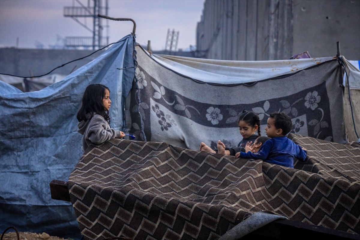 Vatandaşlar, Gazze kentinin batısındaki El-Reşid Caddesi boyunca kurulan derme çatma çadırlarda açlık ve soğukla baş başa kalmış durumda…