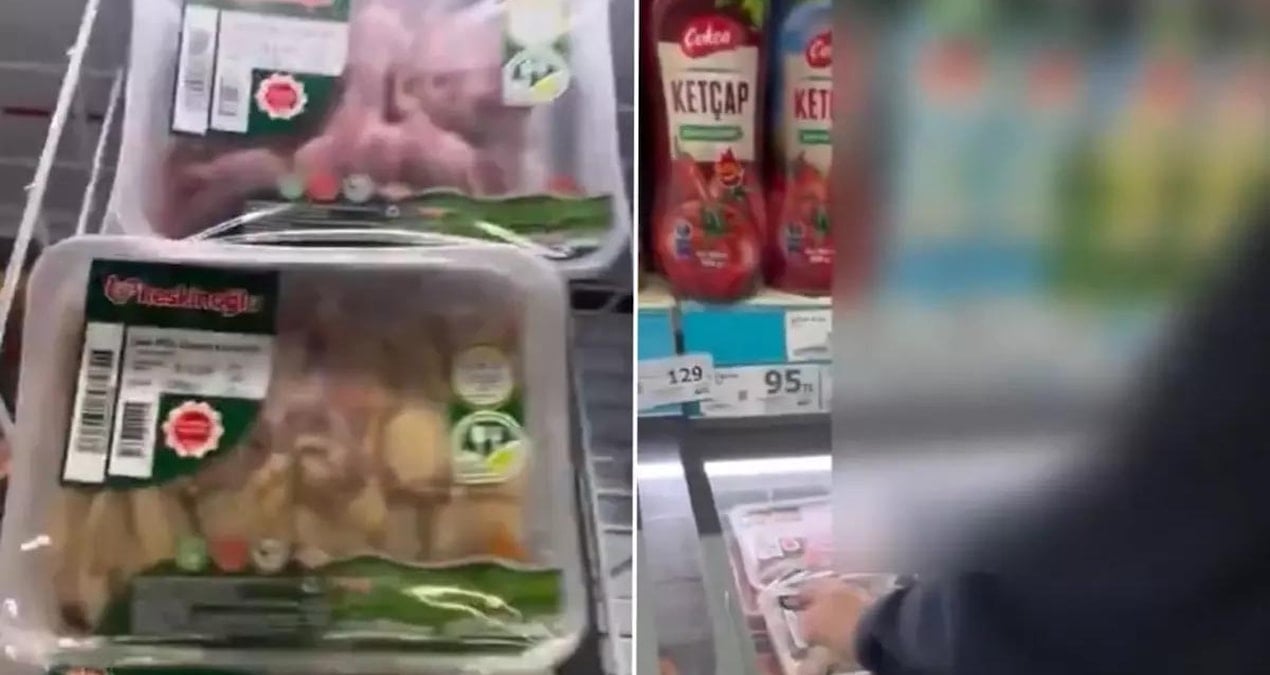 Olayın, üç harfli zincir marketlerden birinde yaşandığı belirtilirken, müşteri ile çalışanlar arasında kısa süreli tartışma yaşanıyor. Kadının ısrarlı uyarılarının ardından market çalışanı, bozuk olduğu öne sürülen tavuk ürününü “Gözden kaçmıştır, kaldırırız” diyerek reyondan alıyor.