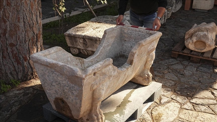 “Ekibimiz, küvetin bir çeşme yalağı olarak devşirildiğini tespit etti. Normalde kırıkların, kesiklerin bulunmaması gerekirken küvetin formu değiştirildiği, üstten suyun girişi ve alttan çıkışı için iki delik açıldığını görüyoruz.”
